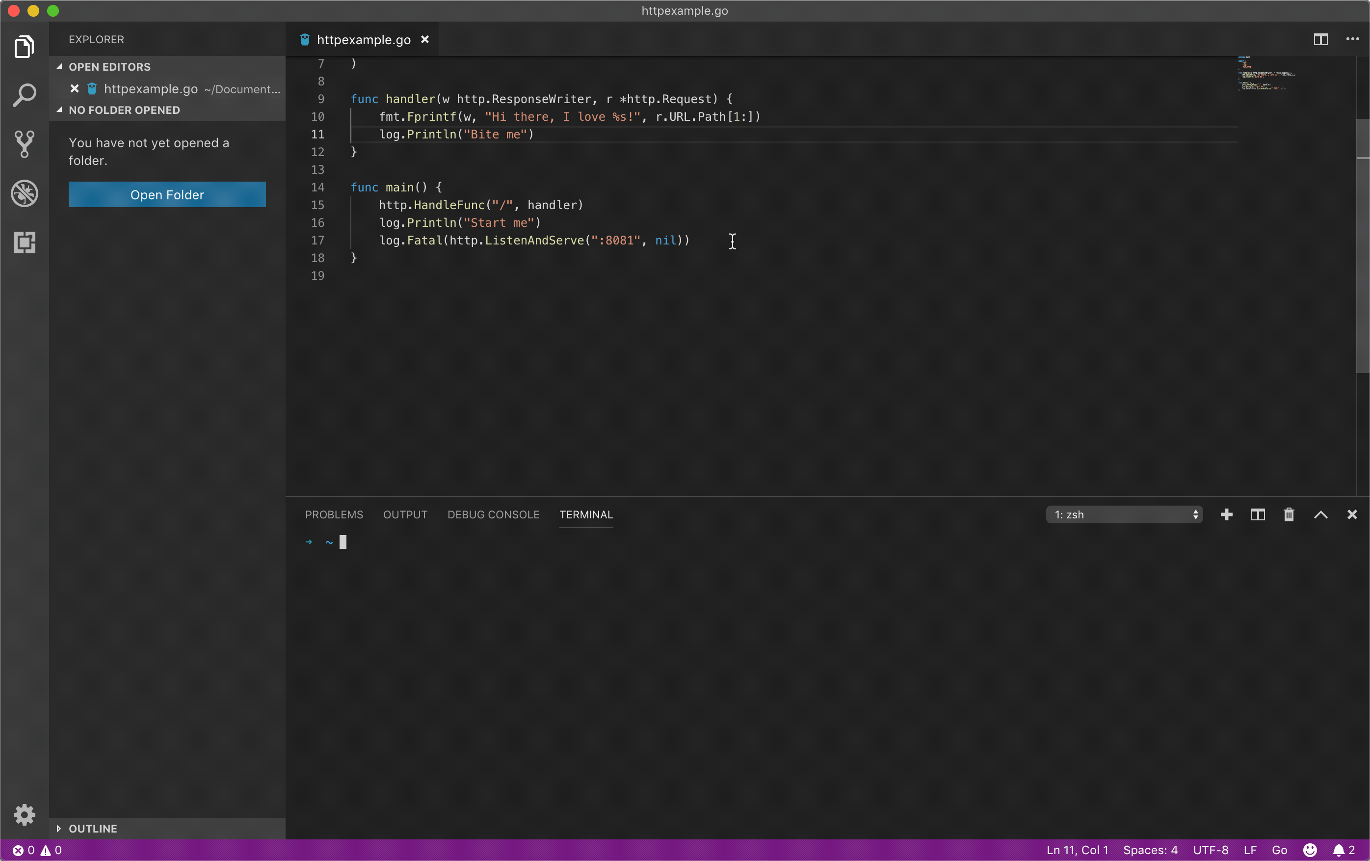 来,那些来自“不折腾不舒服”星球的童鞋看这里。要说定制化IDE,这款微软出品的轻量级IDE——VS Code,自从推出后,就以界面简约、操作快捷、插件丰富等特性,俘获了一大批“不折腾不舒服”星球人。有趣的是,星球人其中go语言开发者对VS Code的尤其偏爱,围绕着go语言的插件层出不穷,连微软官方自己都出了一个集大成的vscode-go插件,包含代码智能提示、自动补全、集成测试,当然还有代码调试功能。