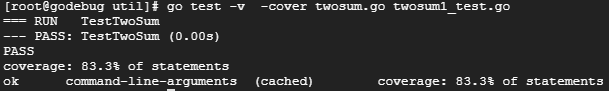 使用gotests命令,为例子中的TwoSum方法自动生成测试代码: